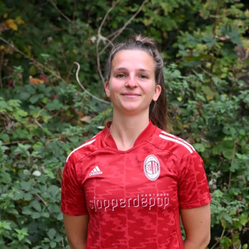 Onze nummer zas, stukje permanente Veense kermis naar de mens toe. Altijd blauwe plekken die ze zelf opzoekt en dan zelden echt de watertas nodig. Dancing queen met sigaret op de lippen, en dan van 60 meter die bal over een huilende keeper jassen. Had een stabiele relatie met Barry, maar er staat gelukkig altijd een nieuwe leasebak klaar.